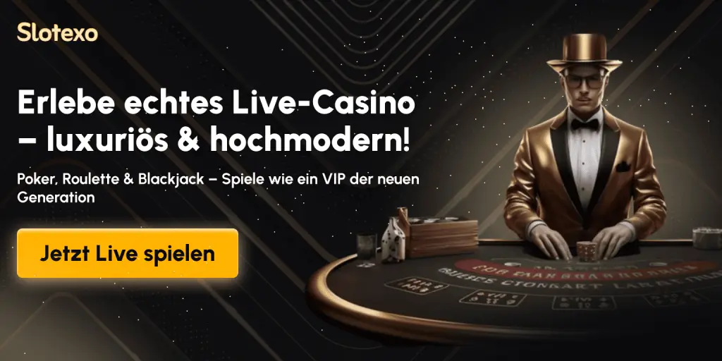 Im slotexo live casino erleben Sie die Spannung echter Spieltische in Echtzeit. Professionelle Dealer führen durch Roulette-, Blackjack-, Baccarat- und Game-Show-Varianten, die per HD-Stream direkt auf Ihr Gerät übertragen werden.